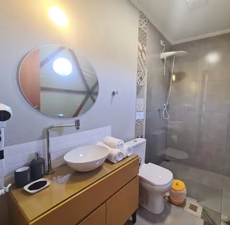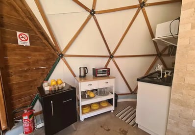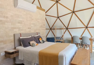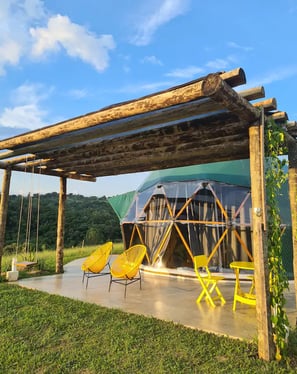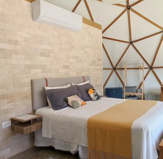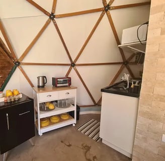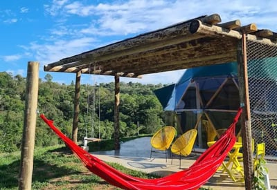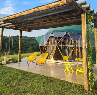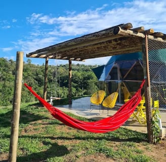 Convidamos casais a viver uma experiência única e em conexão com a natureza ao se hospedar no Domo da Cuesta! Acorde com uma vista incrível das montanhas, aviste tucanos, seriemas e outros lindos pássaros, e em noites sem nuvens, vislumbre um céu maravilhoso. Passeie pela fazenda até o rio que corta a propriedade e tome café da tarde apreciando um lindo pôr do sol. Tudo isso com muito conforto, incluindo cama queen, mini cozinha, banheiro privativo e internet wifi de 300 mega. Venha desfrutar de momentos inesquecíveis!