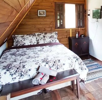 Convidamos todos os casais a viverem uma experiência única e romântica em nosso chalé em Campos do Jordão. Desfrute de lareira a lenha, banheira de imersão, cama box queen padrão hotelaria com sistema de aquecimento no colchão, Wi-Fi, Chromecast na TV e uma cozinha compacta. Com uma vista deslumbrante para as montanhas, o chalé é muito tranquilo, bem centralizado e localizado em uma área nobre em meio à natureza, a apenas 3,9 km do centro turístico de Capivari. São apenas dois chalés, garantindo maior exclusividade e privacidade.