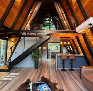Localizada em meio à natureza exuberante de Gramado, a Cabana Canela oferece acomodações impecáveis, design moderno, área interna ampla e café da manhã gourmet entregue diretamente na cabana. Ideal para famílias que buscam tranquilidade e casais que desejam celebrar ocasiões especiais, a Cabana Canela garante uma experiência memorável em Gramado. Reserve já e explore as fotos da cabana e seus arredores.