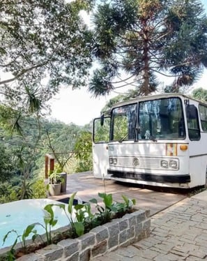 Esse ônibus é equipado com ar-condicionado e aquecedor, garantindo o controle ideal de temperatura mesmo no meio da floresta das Montanhas Capixabas. Localizado em uma propriedade privada próxima ao centro da cidade de Domingos Martins, o ônibus oferece segurança e conveniência. Além disso, há espaço externo para estacionamento, proporcionando praticidade durante sua estadia. Venha desfrutar dessa aventura única e fazer parte de uma experiência verdadeiramente extraordinária!