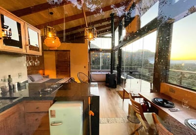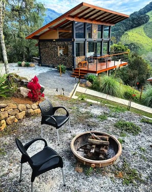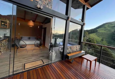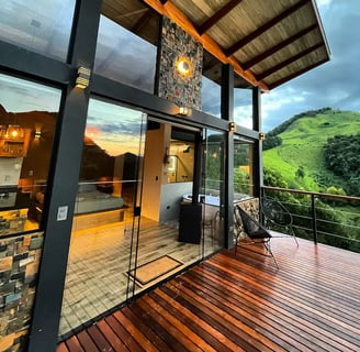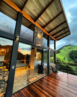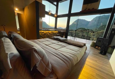 Convidamos todos os casais a conhecerem o Chalé Montanha, uma construção de alto padrão projetada para quem deseja curtir dias românticos no meio da natureza. Com uma arquitetura arrojada e amplos panos de vidro, o chalé integra a beleza natural ao seu ambiente. Desfrute de uma vista de tirar o fôlego para a cadeia de montanhas da Serra da Mantiqueira. No exterior, aproveite fogueiras, cachoeiras, rios, lagos, trilhas, bosques de araucária e florestas de xaxim. Venha desfrutar de uma vivência ímpar neste lugar encantador!