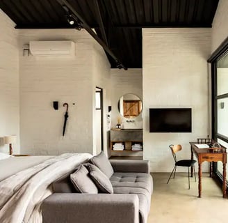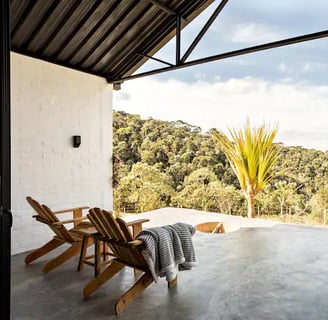 Convidamos todos os casais a conhecerem nossa casinha de 50 m², onde o minimalismo encontra a natureza integrada à Serra da Mantiqueira. Este chalé de estilo industrial foi projetado para que você se conecte com o essencial e aproveite cada momento sem pressa, seguindo o ritmo encantador da região de Gonçalves. A ampla varanda convida você a contemplar a mata nativa e o céu radiante estrelado. Nossa cozinha é totalmente equipada para que você se sinta.