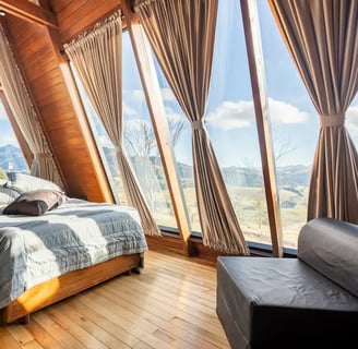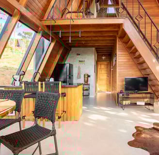 Convidamos todos os casais a vivenciar uma experiência única em nossa cabana isolada na natureza, com a vista mais impressionante da famosa Pedra do Baú. Situado em Gonçalves, no sul de Minas Gerais, nosso charmoso chalé em formato A-Frame combina perfeitamente a arquitetura arrojada com o charme e a vida do campo, sem perder a modernidade e a sofisticação da cidade. Ideal para casais apaixonados, este é o local perfeito para viver uma experiência sensorial inesquecível.