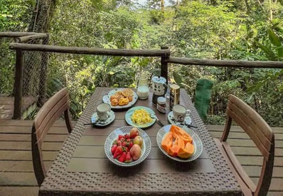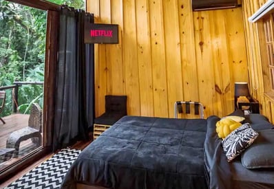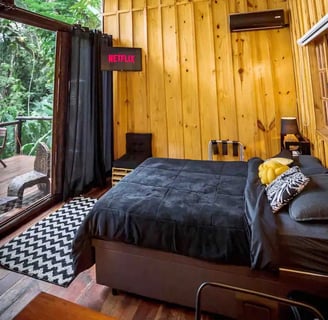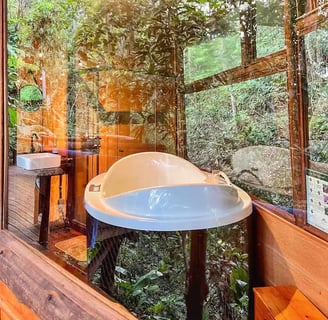 Convidamos todos os casais a uma imersão e experiência na mata, o lugar ideal para fugir da rotina e aproveitar dias incríveis na natureza. Nascemos com o propósito de levar conforto, bem-estar e ar puro para os seus dias. Seremos o seu refúgio para se desconectar da correria do dia a dia e se reconectar com o que realmente importa: você. Localizados na região de Guaratiba, RJ, em um condomínio fechado, oferecemos fogão, forno, churrasqueira e utensílios básicos para cozinhar. Venha desfrutar de momentos especiais e revigorantes.