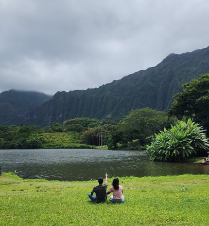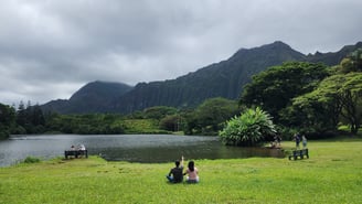 Oahu é a ilha que abriga a capital do estado do Hawai, Honolulu. É a ilha mais desenvolvida e populosa, com vários prédios modernos, vida noturna e muitos jovens. É aqui que você vai encontrar agitação, aulas de surf e aquelas famosas ondas gigantes em que surfistas do mundo todo vem se aventurar. Mas apesar de ter muitas praias espetaculares, para nós o ponto mais alto dessa ilha foi o Hoʻomaluhia Botanical Garden. É um enorme jardim botânico, no meio da ilha de Oahu, cercado por montanhas e muitas árvores. A visitação é gratuita e você pode percorrê-lo de carro, e parar nos vários estacionamentos ao longo do parque para caminhar, tirar fotos instagramáveis e contemplar essa paisagem surreal a pé. Caminhar por entre as árvores e ver o topo das montanhas dividindo os céus com as nuvens me fez sentir dentro do Jurassic Park (sem os dinossauros, claro).