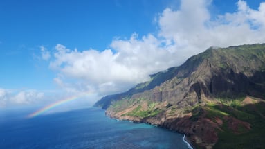 A ilha de Kauai é um verdadeiro tesouro escondido. As praias mais incríveis estão aqui, com águas calmas e transparentes, de temperatura agradável, cercada por muitas montanhas e florestas. Mas a ilha tem muito mais a oferecer além das suas praias magníficas, por isso, se possível, faça como nós e reserve um passeio de helicóptero para que você possa desfrutar melhor ainda da experiência que é visitar essa ilha. Seus despenhadeiros grandiosos, cachoeiras escondidas no meio da floresta e praias inacessíveis por terra foi uma experiência que encheu meus olhos de lágrima e meu coração de alegria.