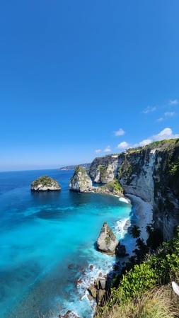 Nusa Penida está há uns trinta minutos de ferry boat de Bali, e é a ilha instagramável, de onde vemos as fotos mais lindas e famosas. Alguns penhascos formam paisagem tão surreais, que parecem que saíram de um filme. Foi emocionante estar ali!