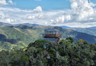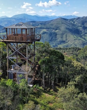 Explore uma experiência única no Brasil em Itamonte, MG, onde foi erguida uma torre de observação florestal no topo de uma montanha, entre os Parques do Itatiaia e Papagaio. Com 14 metros de altura do solo e a incrível altitude de 1.800 metros, esta também é a cabana Airbnb mais alta do país. Inspirada nas torres vigias de incêndio dos parques florestais da América do Norte, esta construção oferece uma perspectiva incomparável da paisagem circundante. Venha viver uma experiência única de conexão com a natureza e contemplação das maravilhas da região.