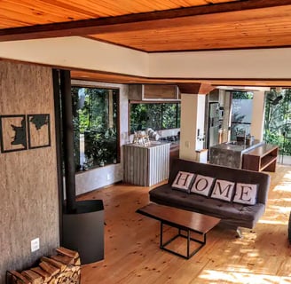 Convidamos casais a viver a experiência indescritível de momentos em uma casa no alto das árvores! Oferecemos hospedagem alternativa e aconchegante em um dos lugares mais altos de Jaraguá do Sul. A vibrante natureza das montanhas, o som do vento balançando as árvores, o canto dos pássaros, e a presença de saguis e esquilos ao redor da casa compõem uma harmonia perfeita. Acreditamos que a natureza é nosso lar e, com muito amor e zelo, queremos oferecer aos nossos hóspedes essa mesma energia. Venha se reconectar e desfrutar de uma estadia única!