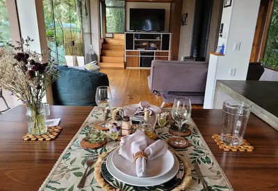 Os valores de hospedagem são a partir de R$650 por noite, variando conforme os dias escolhidos da reserva. Para mais informações, entrar em contato com o responsável pelo direct do Instagram @recantonasarvores.