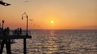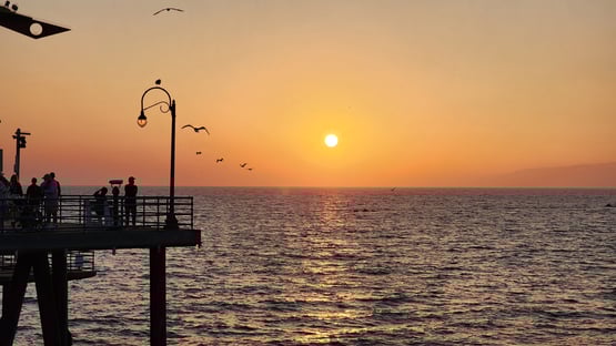 O bairro de Santa Mônica é uma gracinha, como nos filmes. A água do mar é mega gelada, e o píer super movimentado o dia inteiro. Mas a melhor hora (e a mais cheia) para se estar no píer é a do pôr do sol, quando podemos ver aquele misto de cores no céu e o sol se pondo no mar. Algo que também amamos fazer por aqui foi alugar uma bicicleta dupla e pedalar pela orla até o bairro do lado, Venice; a orla é lindíssima e ótima para caminhadas, corridas, pedaladas, ou só para sentar e curtir o lugar.