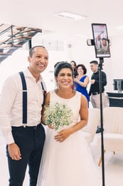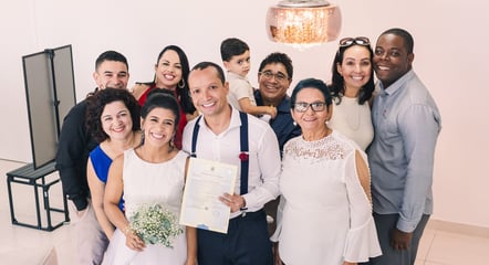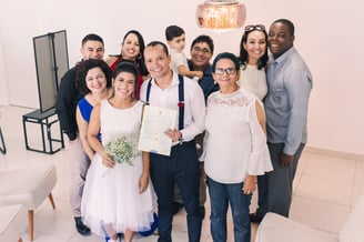 Nossos amigos e familiares, mesmo a distância, participaram desse dia especial por acompanharem por videoconferência nosso casamento, e a sensação era que a sala do cartório estava lotada de pessoas que amamos.