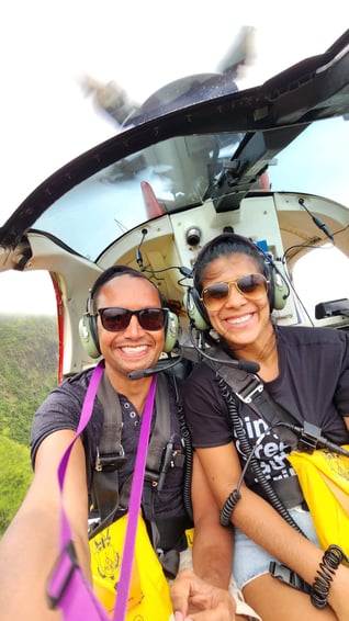 Um passeio de helicóptero é uma experiência única e romântica, com aquele toque de aventura.