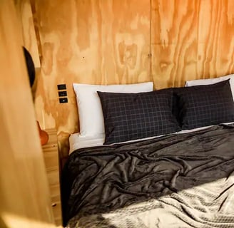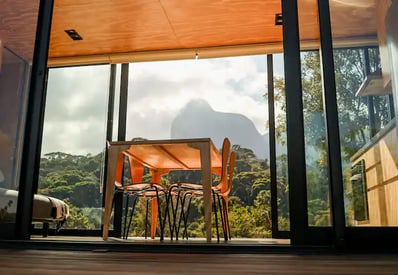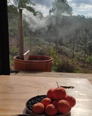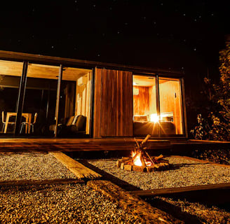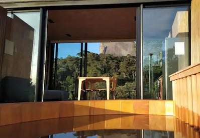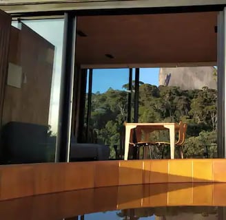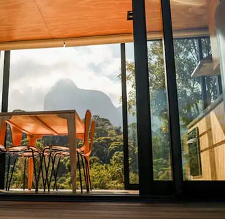 Convidamos todos os casais a conhecer nossa cabana minimalista com vista total para a Pedra Azul, situada na melhor localização da Rota do Lagarto. Com amplas aberturas do piso ao teto em todos os ambientes, a cabana oferece uma total integração com a natureza. Possui um quarto com cama kingsize, rede horizontal de frente para a Pedra e ambiente sala-cozinha com sofá-cama. Os ambientes são climatizados (ar quente e frio) e a cozinha é completa. A área externa conta com uma tradicional Picnic Table, ofurô à lenha, mini parilla e local para fogueira. Venha desfrutar de momentos inesquecíveis em meio à natureza.