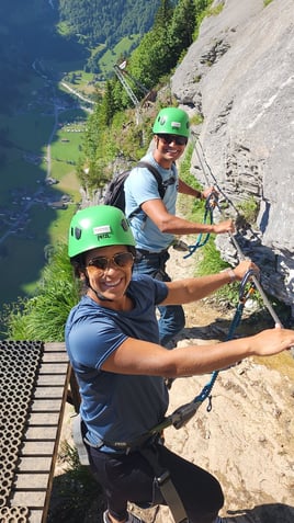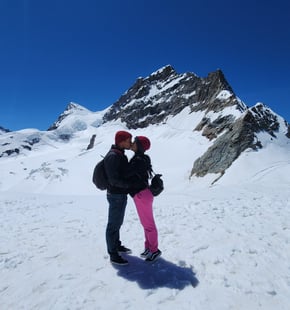 A Suíça nos presenteou com aventuras incríveis! Fizemos uma trilha de três horas para conhecer uma das pontes suspensas para pedestres mais longa do mundo, enquanto admirávamos os Alpes; fizemos trilhas de bike pelas montanhas (e descobrimos a benção que é subir uma ladeira de bicicleta elétrica); fizemos uma trilha ferrata, que basicamente é escalar uma montanha presos a um cinto, pisando pelos ferros antigos instalados ali (adrenalina pura!); descemos nos enormes tobogãs instalados pelas montanhas dos alpes; visitamos a fábrica de chocolate da Lindt (e comemos muuuito chocolate); e para finalizar com chave de ouro, fizemos um passeio surreal até a estação de trem mais alta da Europa, no topo da montanha Jungfraujoch, e ali pisamos na neve em pleno verão europeu!