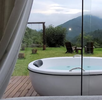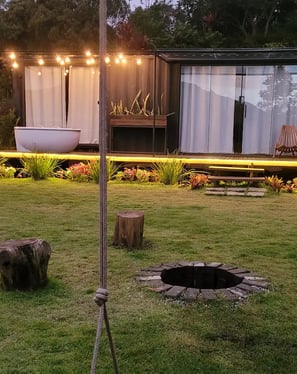 Convidamos casais a conhecerem nossa casa-container em Terê, onde poderão desfrutar de uma experiência única com todo conforto em um lugar de paz e conexão com a natureza. Este refúgio oferece uma vista incrível para as montanhas e uma energia especial sentida por todos que passam por aqui. Localizada em um condomínio no "Circuito Terê-Fri", a apenas 20 minutos do centro de Terê, a casa possui cozinha completa, banheira externa aquecida, cama queen, fogo de chão, rede horizontal, balanço e muito mais. Venha se reconectar com você mesmo(a) e com seu par em um ambiente encantador!